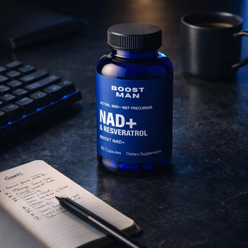Boostman è un integratore alimentare premium formulato per l'uomo moderno. Contiene NAD+, Resveratrolo, CoQ10 e un potente mix di ingredienti naturali per massimizzare energia, chiarezza mentale e supporto circolatorio. È la chiave per una vitalità senza compromessi.