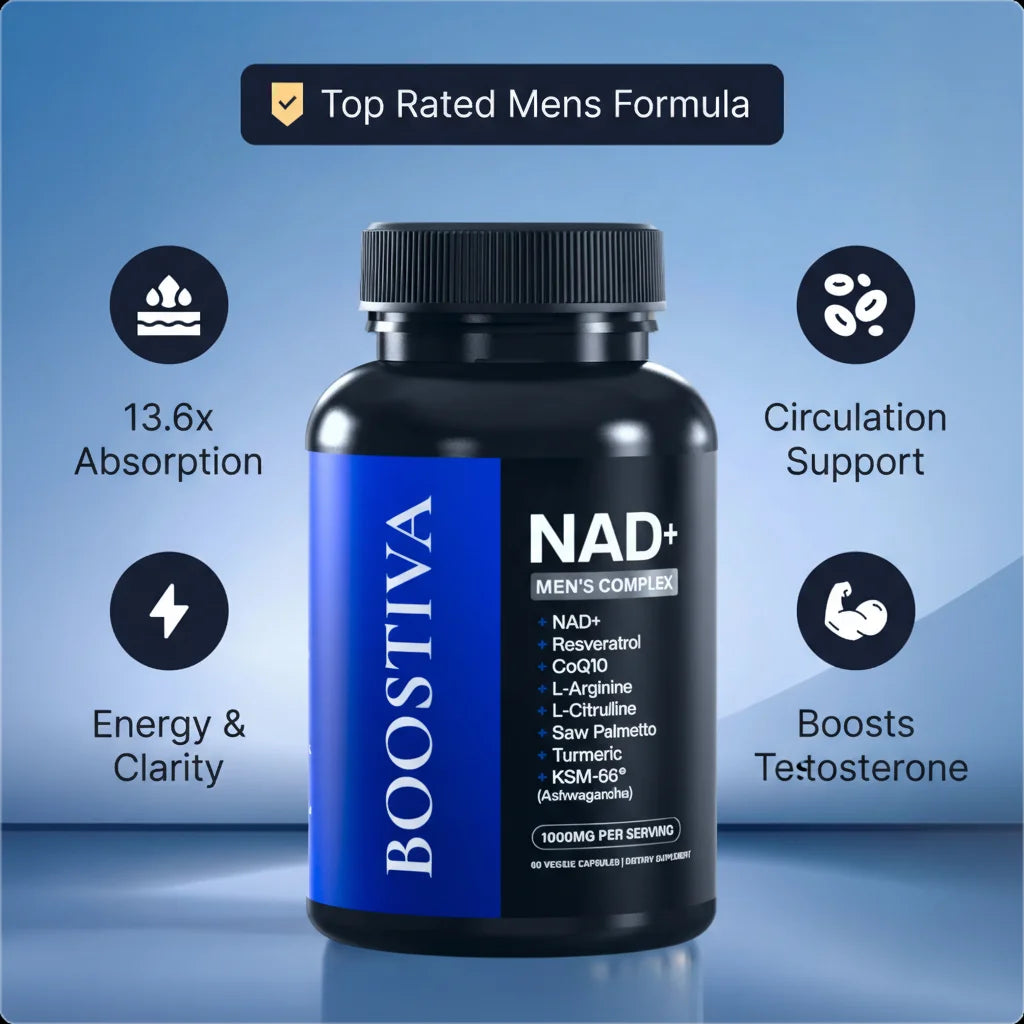 Boostiva Uomo è un integratore alimentare premium formulato per l'uomo moderno. Contiene NAD+, Resveratrolo, CoQ10 e un potente mix di ingredienti naturali per massimizzare energia, chiarezza mentale e supporto circolatorio. È la chiave per una vitalità senza compromessi.